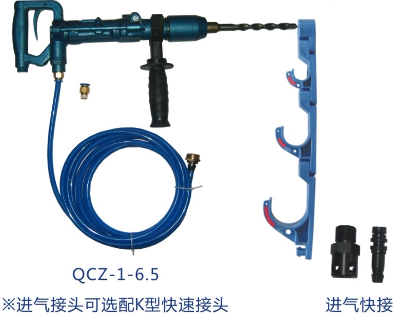 YP5(QCZ-4.5-1气动手持式冲击钻)型手持式凿岩机是轻便灵巧的小型气动工具,具有冲击回转,单纯冲击和顺时针旋转功能。具有气动防爆、无火花、安全性能好等特点。